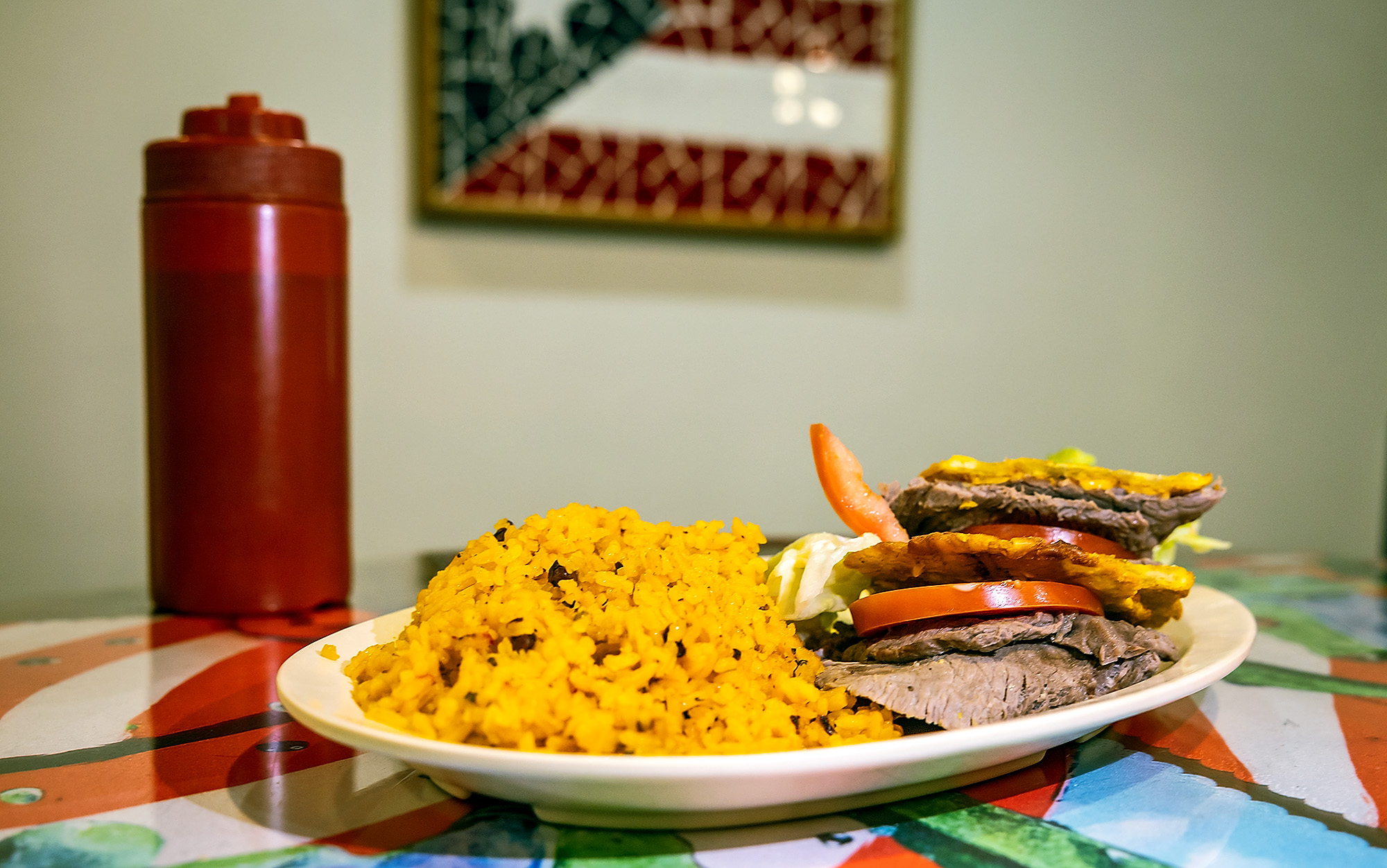 Borinquen's traditional bistec jibarito served alonside a portion of Puerto Rican gandules. LUISANA ORTIZ/THE LATINO REPORTER