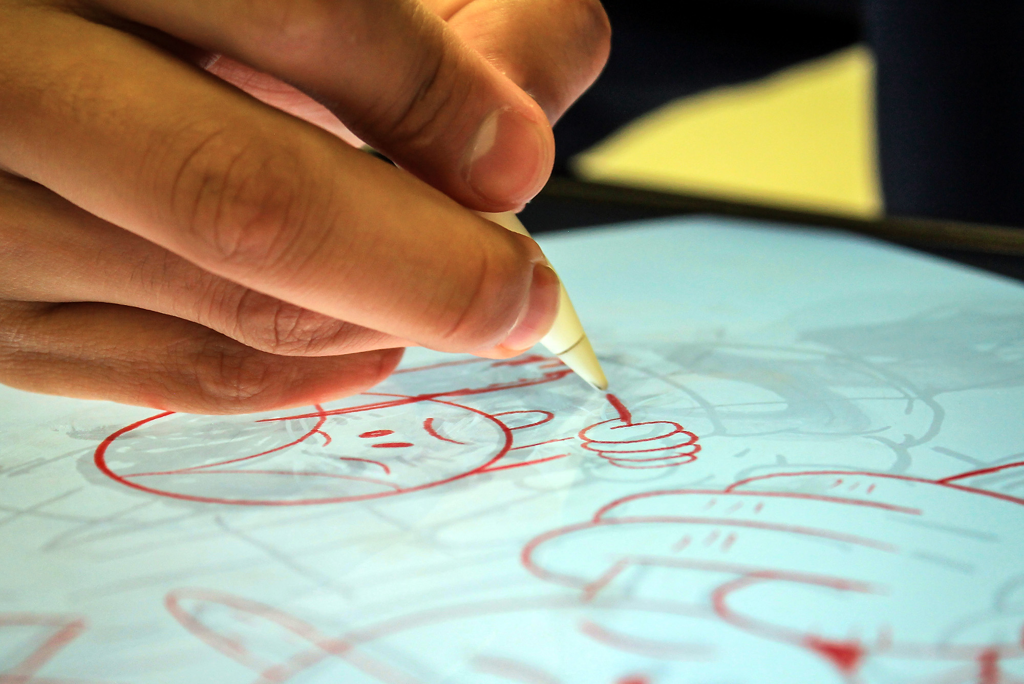 Gomez sketched the outline of his mural at Grounded Studio in Little Village on June 18, 2025, in Chicago, Illinois. ARACELI RAMIREZ/LATINO REPORTER