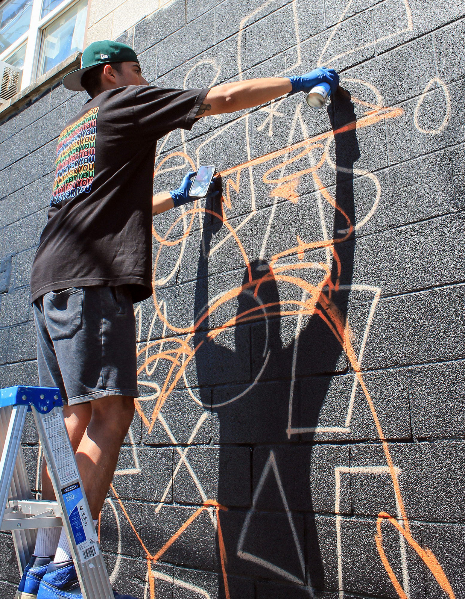 As the sunset cast long shadows over layers of MTN 94 and DANG Hiflow spray paint drying on the walls, neighbors slowed to admire the murals.