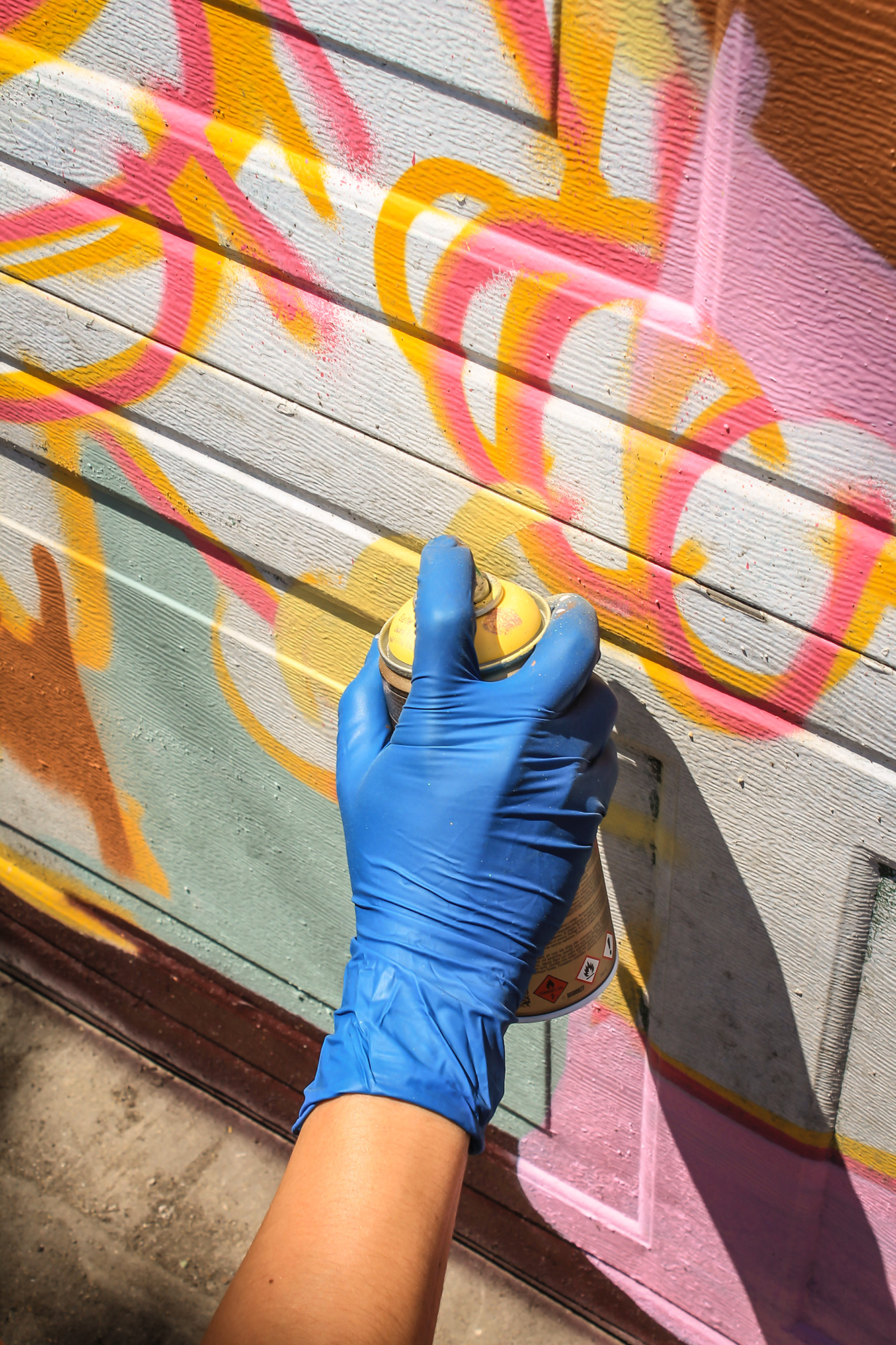 As the sunset cast long shadows over layers of MTN 94 and DANG Hiflow spray paint drying on the walls, neighbors slowed to admire the murals.